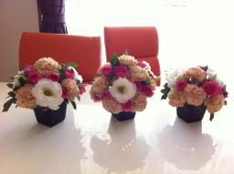 おはようございます~~なんだかムシムシと暑いですね・・・残暑は体にこたえます・・・さてさて。昨日は恒例のママ会でした昨日の課題(?)はフラワーアレンジメントフラワーアレンジメントをやってる友達に教えてもらってみようみまねでやってみました。だけど、本当に気のおもむくまま、ノープランでお花を飾っていったらやっぱり最後はあれ??みたいな感じになって(笑)基本は「一度オアシスにお花を挿したらやり直しなし!」だそうですがブスブス挿しなおす私たち・・・(笑)手直しの甲斐あって(!)なんとか形になりました~ 見て~、まったく同じ材料を使ってるのにやる人が違えばこんなに出来上がりが違うんだねぇ~ちなみに私のは一番左端の。。思ってたよりも短時間で仕上がって後はまったりお茶タイム~お昼もみんなが用意してくれていてごちそうになりました~お花は帰って早速食卓に飾ってみました。 いつもの食卓もお花があるだけでオシャレ度がぐ~~~んとUpですほんと楽しかったなぁ~ あ、この話とは関係ないけど近所の仲良しママ友が今朝二人目を無事出産~昨日は友達と会って心が満たされて今日は朝からhappyなニュースを聞いてまたほんわかあったかな気持ちになって今、と~っても幸せです、私(笑)今日もこのままhappyで一日が終わりますように にほんブログ村