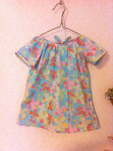 こんにちは^^ツイッターでもつぶやきましたが今日は息子、幼稚園で熱を出して初のお呼び出し。今年の冬は1月に一家でインフルでダウンした以外は風邪もまったくひくことなく元気だったのでそろそろ誰かきそうだな・・・と思ってたら息子・・・でした><久々に咳&熱でかわいそうですが幸い熱も微熱程度でたいしたことなさそうなのでこのままよくなってくれることを願っています☆今はよく眠っています☆(娘もね^^) で、今日も春物のお洋服Upです☆リバティのルシールのライトブルーで作ったワンピースです。パターンはC&Sのみんなのてづくりに載ってる「後ろリボンのブラウス」を丈を伸ばしてワンピにしました。この後ろで結ぶリボンがなんともかわいい♪これは娘用に作りました。反物で見たときより、やっぱり形に仕立てたほうが断然素敵な生地です。さすがリバティだわ^^夏は涼しげに一枚で・・・はもちろん春はカーデやレギンスを合わせて着れば絶対かわいいぃぃ~はず!はぁ~早く春が来ないかなぁ^^ そして、色違いの生地を自分用に買ってるのでトップスを何か作るつもりなんですがどんな形にするか、まだ妄想中~♪ここ最近、リバティの生地をちょこちょこ買い集めては春夏用の服にしようと寝かせてきて特に娘のは少しでも長く着れるようにと90サイズになるのをずっと待ってたのでやっと!今その出番がきたって感じです(笑)今裁断が終わって縫い縫い待ちのリバティさんもいらっしゃるので合間を見つけて縫い縫い&Upしていきたいと思いま~す☆ にほんブログ村