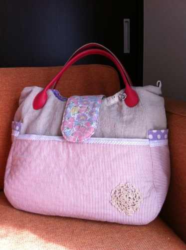 こんばんは^^本日2回目の更新☆Up待ちの作品がたくさんあるので、どんどんUpいきま~す^^ で、こちら☆ジャ~ン☆春っぽい色使いがとってもかわいいマザーズバッグです!こちらはだいーぶ前に途中まで仕上げてたのですが持ち手が最後まで決まらず^^;でもいよいよ春!ということでやっとのこと、持ち手もつけて仕上げました(笑)こちらのバッグ、ふたとかサイドポケットの口部分にYUWAの生地を使っています^^YUWAはこの色と風合いが大好き^^中はパープル地に白ドットのキルトを使ってふっくら&しっかり仕上げ♪マザーズバッグということで、もちろんショルダーもつけていますので斜め掛けもできますよ♪こちらの形も私の気が向いたときにしか作らないというmain・gaucheではレアなアイテム(笑)(ほんとは定番化したいんですけどね・・・^^;なかなか手間もかかるしエネルギーがいる形なので><)3/25のちいさなマルシェに持っていきますよ~☆ちいさなマルシェ用の作品づくり、大詰めを迎えているのですが「春バッグ&リバティ小物」がテーマになりそうな顔ぶれです^^まだまだUpしていきますのでお楽しみに~~^^ にほんブログ村