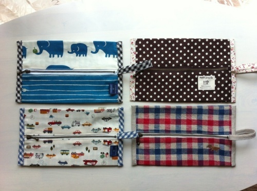 こんにちは~^^今日からやっと幼稚園が午後保育になりました☆息子、よく食べるので去年使ってたお弁当箱ではちょっと少ないかなと思い、昨日あわてて少し大き目のを買いにいきました^^;今日はいきなり週1回のお弁当日。喜んで持って行ったけど、全部食べれたかなぁ~^^ で。。いよいよmiyamama用作品のUpもこれが最後になります☆最後は、これまた定番なおしりふきポーチ☆ どど~んと(!)8点です☆で、こちらもいつものなんで詳細はいらないかと思ったりするんですが一応説明させていただきますね~^^このおしりふきポーチ、市販の80枚入り替え用おしりふきが入ります。(下、写真はムーニーのを入れてます)スナップつきの持ち手があり、バッグやベビーカー、車のシートなどにひっかけることができます。おしりふきの内蓋をはずして入れることもできますがはずさずお使いいただいたほうが、おしりふきの乾燥をより防げると思います^^そしてマチはおしりふきの残量に合わせて調整がきくのでバッグの中でもかさばりません☆一応、ネーミングは「おしりふきポーチ」となっていますがおしりふき以外のもの、たとえばウェットティッシュを入れてみたりトイレの除菌シートを入れてトイレのインテリアにしてみたりと赤ちゃんがオムツを卒業しても使い道いろいろ☆ 私自身も愛用中のおしりふきポーチです☆ ということで、お近くの方はぜひぜひ4/28のmiyamamaスタイルにあそびに来てくださいね~☆ にほんブログ村