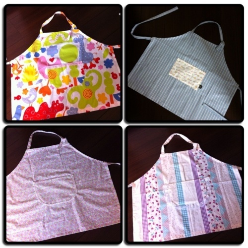 こんばんは^^えらく長いタイトルつけてしまいましたが^^;タイトルどおり(笑)、まずは次回納品分すべてUpします☆下はそれぞれのポケット周りのアップ画像です。また全体像写真とアップ写真の位置がうまく合わせられなくて><見にくいですがすみません><女の子用はポケットの角を丸く、男の子用は四角くしています^^次回納品するのは上の4点と、前回Upしたトリコロールの分、合わせて5点になります。そして実際に子どもが着用してみた感じですが・・・まずはうちの息子(5歳7か月)・・・ちょうど膝丈~少し膝上ってところでしょうか・・・。リボンも普通に結べてまだ余裕が少しあります。そしてお次のモデルは3歳8か月のプリティーな女の子。やや膝下。ウエスト周りもさらに余裕があります。この子はうちの娘・・・と言いたいくらいかわいらしい女の子ですが残念ながらうちの子ではなく(笑)、近所のお友達です^^お外であそんでるところをつかまえて、モデルになってもらいました☆協力してくれたNちゃん、ありがと~~☆☆そして、最後にうちの娘(1歳9か月)・・・。ははっ^^; さすがに大きいですね(笑)丈はちなみにひきずりはしないものの、ソムリエエプロンなみにロングな感じ。リボンもうしろで結ばず前まで持ってきて結べるくらい余裕がありすぎ。だけど一応は普通に歩いたり動いたりすることもできていました^^まぁ、この年齢の子は何をしてもかわいいので(笑)これもありと言えばあり・・・かな?!と思ったり・・・ とこんな感じで子供たちに試着してもらいましたが少しはおわかりいただけたでしょうか?!こちらは5/28.29にJR西ノ宮駅近くのかわいい雑貨屋さんchouchohuさんで開催される2dayshopに出品する予定です。またイベントの詳細は後日改めてお知らせさせていただきますね^^ さてさて!いよいよ明日からは神戸元町のチャリティーマーケットですよ!皆さまのお越しをぜひぜひ!お待ちしております☆ にほんブログ村