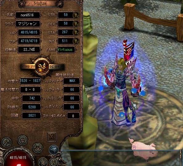 こんにちは~さて、昨日は久しぶりに2鯖へ^-^誰もいないのでボーっとしていたら・・・また・・・やっちゃいました。。。ペットのHPが減っちゃいました>_<レベルがあがれば回復しますが、まだ48歳と50%ほどなので;_;まぁ、死なないのでいいか^-^;と、悲しんでいたらゴクさんがIN♪久しぶりに二人で火炎に行ってきました^-^bお水ご馳走様でした^0^