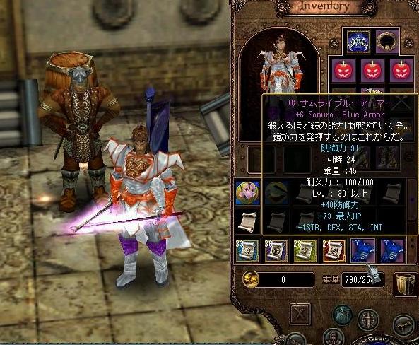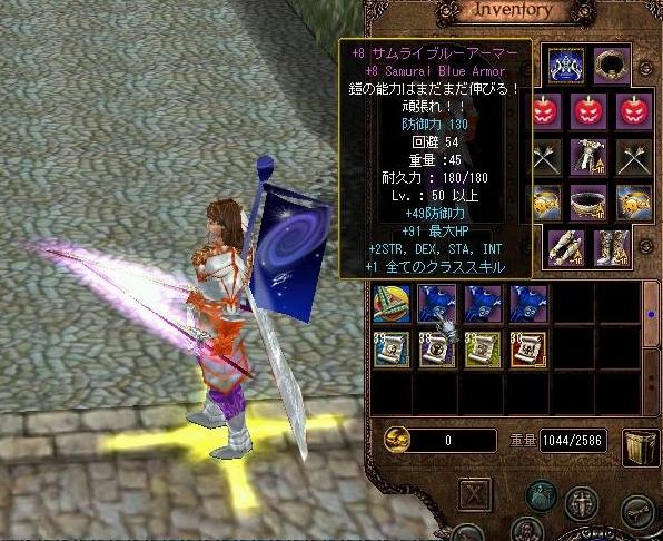 こんにちは~さて、マンボイベント何日目だろ・・・これまでの成果+7侍・+6侍・+5侍・ホリ33・魔盾30・PB28・オーラ24。。。やはりサボリすぎ>_<;というかいまいちやる気がおこりません^-^;イベントはいつまでだっけ?^-^?期間中にはなんとか1セットづつ揃えたいなぁ(〃⌒ー⌒〃)ゞ