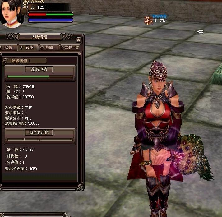 こんにちは~さて、前回の陣は職業別10位達成したところで終わりました。新しく「盛夏の陣」が始まり、何日目?だろう?これまで戦争には皆勤賞^-^b今のところ職業別で3位にいるみたいですΣ('◇'*)まぁ、1回の戦争で稼ぐポイントが少ないのですぐに抜かされそうですが・・・今回の陣はいけるトコまでいきますよーp(・∩・)q