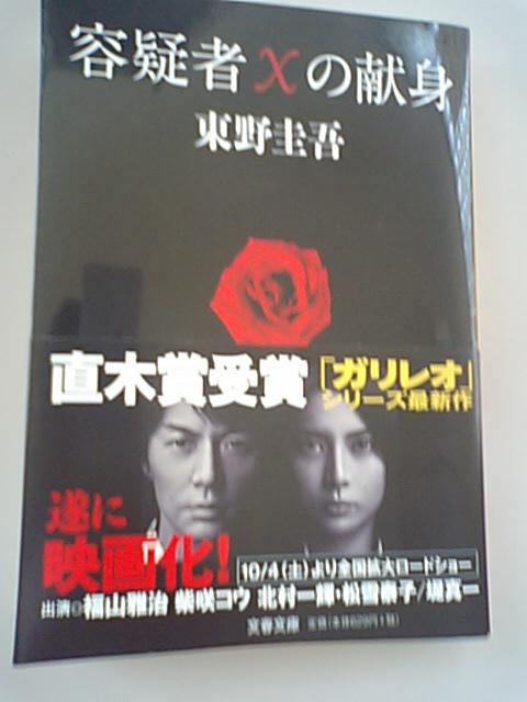 こんにちは~さて、昨日読んだのがこちら表紙が黒くテカテカで・・・自分の顔まで写りそうでしたよΣ('◇'*)携帯と指は写りこんでいますが>_<;以前にドラマでやっていた『ガリレオ』の続きのような感じでなんとなく先が読めましたが・・・まさか!って思うような結末?これ以上は言えません。来月には映画化されるようなので見に行きたいなぁ。('-'。)(。'-')。ちなみに、小説で読んだ『陰日向に咲く』のDVDを観てみました。本で読むのとは若干イメージが違い、それはそれで楽しめましたヾ(〃^∇^)ノでも自分は、やっぱり本のほうが好きかな^-^