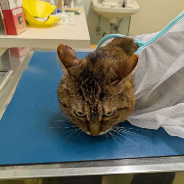 行く前に電話した時は誰もいなかったのに、着いたら電話での問い合わせやら別の患者の猫やらで大忙しよ。