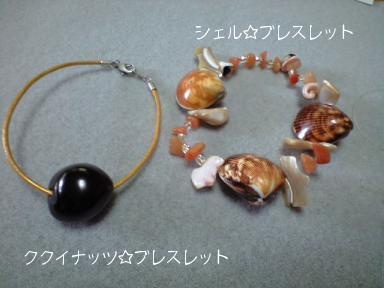 かなり夏を意識して、遊び心で製作した『シェルブレスレット』シェルたっぷり&天然石さざれを使用したアクセサリーです『ククイナッツ☆ブレスレット』は、ハワイの香りが漂います~最近のお気に入りで、ヘンプアクセサリー作りによく使うグッズで、種類は無地・カラーペイント・図柄ペイントetcが、かめさん・ハイビスカスが可愛いんですまだフォトがないので、また今度~