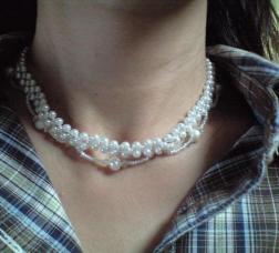 先日、知人に依頼されて初めて結婚式用の、フォーマルなアクセサリーを製作させて頂きました~服をみせてもらって、何となくイメージを考えて作り出したものの、途中で長さやデザインが左右対称にできなくて、真ん中にいくまでにホントに時間がかかりました出来上がりは、自己採点でう~んどうしよう・・・総合70点70点の物を、人に渡すのは申し訳ないです・・・でもデザインとかは、気に入ってるんです特にブレスレットから、作ったのでブレスレットはお気に入りです処理とかの目に見えない問題で、マイナスが多すぎますねもっとがんばらなくちゃ
