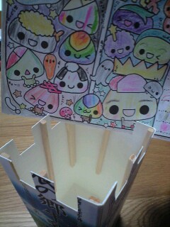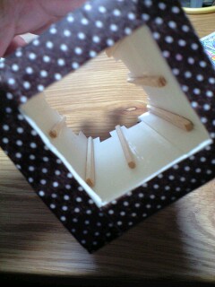 やってみたい子供は、牛乳パックで編み器を