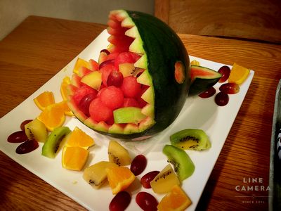 朝ごはんは必ずフルーツを出すようにしています。ヨーグルトに入れることが多いかな。たまにはサイダーを注いでしゅわしゅわに。夏はスイカを切ってどーん出せるので楽です。