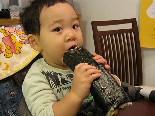 しょうやんインフルエンザそして胃腸炎を乗り越えて、本日より保育園復活です(朝はちょっと泣いちゃったけどね・・・)保育園の豆撒きは、昨日やったみたいで、今日はなかったみたい思えば、しょうやん去年の今頃、保育園に通い始めたんだよなぁ~早いもんで、1年だね。まだまだ甘えちゃんで泣いちゃう時もあるけど、よく頑張ってるよ、しょうやんエライ帰りに、恵方巻と豆を買ったんだけど、巻物はほとんど売れてて、作ってるおじちゃんが5本くらい持ってきたのを、おばちゃん達に負けず、2本GETしょうやんパパを待ちきれず・・・パクリパパが帰ってきてから、またパクリその後は、節分恒例の豆撒きだけど、しょうやんは確実にオニを怖がるので、お面は、友達に福岡みやげでもらった「二〇加(にわか)せんべい」のお面そして、クマちゃんにかぶせた(笑)微妙な距離を保ちつつ、ちゃんと「おには~そと、ふくは~うち」と言ってました今年も家族みんなが健康でありますように