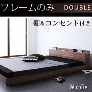 棚・コンセント付きフロアベッド ダブルコア[フレームのみ]ダブル メーカー直送 フロアベッド ダブルベッド ローベッド ウォールナット 低 [送料無料]