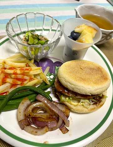 昔懐かしいハンバーガーを見ていたら、クアアイナが食べたくなりました残念なことに、クアアイナはないので、ありあわせでそれなりを作りました右上にあるのは、昨日より素敵便で頂いた、ブルーベリーです毎年2種類下さり、一種類はその都度代わっています今回はこちら大粒で美味しいブルーベリーです二種類を混ぜて,ききブルーベリーをしてみましたが、正解できませんでした^^:鎌倉の弟夫婦が来ていて、義妹が生のブルーベリーを食べたことが無いと言うのでお福分けしました今朝のホテルの朝食がトホホだったそうで、買っておいたヨーグルトに入れて、美味しい朝食のイメージで終われたみたいです^^仕事をしていないのに、普通に食べてしまっているのですっかり太ってしまったので、悪あがきで少し動いていますねこねこらんどの床の拭き掃除をしました知らない間に戻されて、床にこびりついた後を雑巾で綺麗にするのが大変で、割りばしでこすり取ったりしていたのですが、母がいい物を持っていましたちょっと汚いのですが^^;力を入れないでも、床にこびりついたこはんが取れるので、気持ちいいです