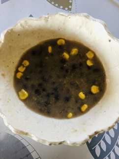 お昼は満足度が少し上がるように、カップスープに湯がいた小豆を入れています