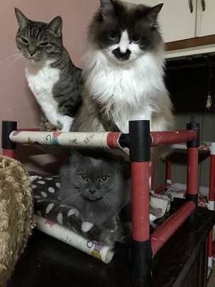 我慢できず、完成していないのに、ルナが登ってきました   ちょっと移動すると今度は二葉が