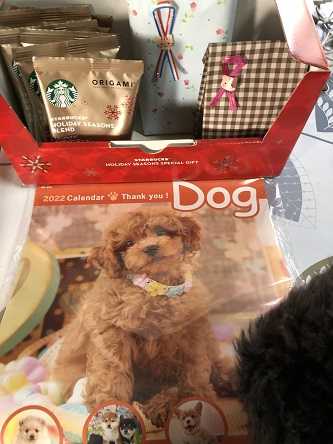 このリリがロックオンしている可愛いプードルさんはkumaru04家のみにゃさんの健康管理をしてくださる、獣医さんのカレンダーだそうです