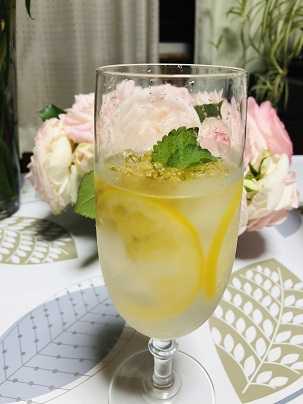 コーディアルに使用した、レモンとお花は冷蔵庫で保存して、飲み物に入れています