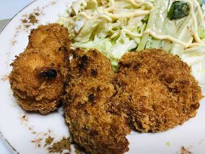 色々迷って、夕飯のおかずは「まい泉」のズワイガニのクリームコロッケ、カキフライ、一口ヒレカツにしました