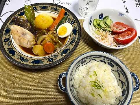 ベランダファームの野菜をこれでもかと入れてしまい,盛り盛りです