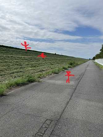 土手が三段階になっていて、社員さんたちも好きな道を選んで歩いています