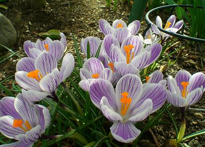 紫色のクロッカス。 白い花びらに、紫色の繊細な模様が、本当にきれいです。薄紫色や、黄色のクロッカスも、あちこちにふぁっ、ふぁっと咲いています。覚えのない場所にも、顔を出していたり、モグラが球根を運ぶのでしょうか。 ご近所さん五人で、我が家で、持ち寄りの昼食会をしました。お互いに、歩いて五分もかからない距離だし、家の中なので、お天気など、どうでもいいようなものですが、やはり、陽射しが明るく庭を彩り、それを見ながら集えるのは、気分も明るくなり、いい日で良かったね、と喜びあいました。窓を全開にして、風を入れると気持いい、というくらいの陽気です。 食べきれない料理を、これでもかと並べ、11時から3時半まで。女の人って、よくまあ、こんなに話があるよね~、と我ながらあきれます。だから、ストレスを溜めないで、元気で暮らせるのよ、と皆で納得です。天気よし、みんなの体調よし、笑顔あり。 良い一日でした。