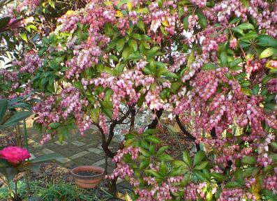 雨上がりの露を、きらきら光らせながら、馬酔木が満開です。 壷状の花が、びっしりと連なり、房になって、垂れ下がります。あしび、とか、あせぼ、といいますが、何故、馬酔木、と書くのでしょうか。有毒植物で、根や茎を煎じると、殺虫剤になるとか。昔は、憎らしい人の馬小屋に投げ込み、馬を死なせたりしたとか。 主人が元気なころは、当時住んでいた東京から、尾瀬に通っていました。二人とも、尾瀬が大好きで、出かけた回数は数え切れません。群馬に移ってからは、尾瀬はお膝元。 赤城山を越えればすぐに行けて、嬉しかったものです。 尾瀬に入る直前の道に「馬酔木」という喫茶店があり、そこまで来ると、いつも、鳩待峠まで、もうすぐだね、と思ったものです。馬酔木、という字を書くたびに、そんなこんなを思い出します。