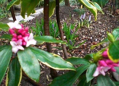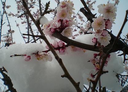 昨日の霙から変わった雪が、思ったより多く降り、今朝は雪景色です。満開の梅も、とっても冷たそう。 な、な、何と! 三椏の木が、二股に分かれたところから、ぽっきり折れて、地面にひれ伏しています。もうすぐ、美しい花が見れるところなのに・・。一面についた花の一つ一つに、雪が積もり頭が重くなったのでしょう。蕾の時期だったら、難を逃れていただろうにな。裂けたところに、添え木をして、ガムテープで縛ってみよう。助かるかも・・。 長い箒を手に、重そうに首をたれている樹木たちを助けて回ります。え、折れているの? と思うほど、首をたれていた馬酔木も、雪を払ったとたんに、ぴんと跳ね返って起き上がり、ほっとしました。 樹木に守られ、クリスマスローズや地面の花は、折れもせず、雪の中で、静かに、明日を待っています。