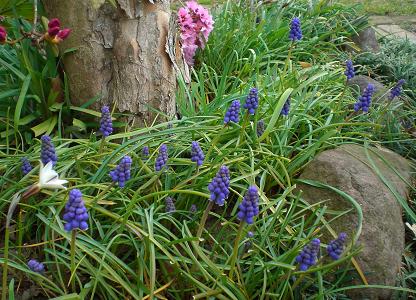 庭一番の高い木、サンシュユの根元に広がるムスカリです。先日までは、葉をかき分けて覗き込むと、地面からちょっと顔を出していたのに、ぐん、ぐん、と伸びて、いっせいに立ち上がっています。 サンシュユの木の向こうに見えているピンクは、ヒマラヤユキノシタです。 どんなに真っ暗な地面の中で、冬を越したとしても、必ず、春には芽をだすぞ、という希望がムスカリにはあります。 NHK「命の対話」、いつも重いテーマですが、先日の柳田邦男さんと、とじこめ症候群の方との命の対話は、今も心に残ります。難病から、完全に体のどこの部位も動かすことが出来なくなった方。まぶたさえも、目の玉さえも。何一つ、自分の意思で動かせないのに、全てを理解できるのです。そういう状態を「閉じ込め症候群」と呼びます。 考えてみただけで、恐ろしい。真っ暗闇の中に閉じ込められ、身動き一つ、出来ない。でも、まわりの状況は理解できるし、聞こえるし、判断もできる。辛いなあ。 それでも、生きたいか。 究極の問いでした。 息子さんを亡くしておられる柳田さんの、言葉を期待しましたが、柳田さんの家族のために、周りのために、生きろ、という言葉も、正しいのか、どうか、私には分かりません。幸いにも健康な私は、そのことを感謝し、日々を誠実に生きることを心がけます。