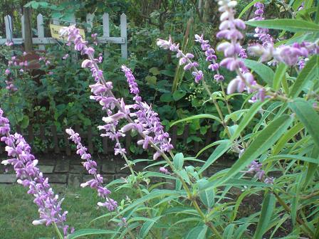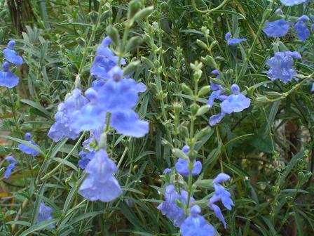 今日から9月。 なんだかちょっと涼しい風がそよそよ。繁殖力があって、暑苦しいばかりだったハーブのミントも、白い花を咲かせ、涼しさを演出してくれています。 宿根のブルーサルビア。暑さで、いまひとつ綺麗ではないのですが、すこし元気になってきましたよ。 安来市にある 「ゲゲゲの女房」の生家を訪ねるのがブームのようです。それを目的に、山陰の旅をしてきた人からお土産の和菓子を頂きました。普段なら、誰かが来るのを待って、いっしょにお茶にするところですが、何だか、甘いものがとても食べたくて、一人でゆっくり頂きました。体が欲しがっていたのかな。とても美味しくて、誰か来ないと、残りも一人で毎日食べてしまいそう! ブログランキングに参加中応援のクリック、よろしくお願いいたします。