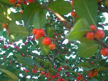 枝ぶりや葉っぱが、梅に似ているからウメモドキ。「もどき」とは、まがいもの。 「擬」 こんな字を書きます。ずい分簡単に名前をつけられちゃったね。葉が落ちても、鈴なりの実は、晩秋まで残り、青空に映えると、とても美しいです。紅い小さな実がいっぱいにぶら下る木の下に立つと、幸せを感じます。大好き。樹形が綺麗で、大木にはならないし、庭植えにはおすすめの木ですね。 実には、発芽できない成分が含まれているらしい。鳥に食べてもらって、そのお腹を通過しなければ、芽を出せない種類なんですって。そういえば、鳥に大人気で、冬には、木に一つの実も残っていません。神様は、生き残りをかけて、まあいろんな方法を試されるのですね。 よくリースに使う、ツルウメモドキは、別の種類のようですよ。 ブログランキングに参加しています応援のクリックをよろしくお願いいたします。