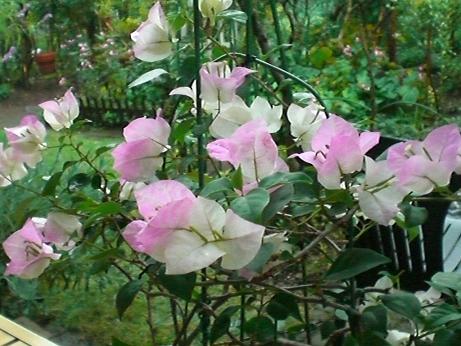今朝も雨、そして寒いです。傘差して庭に出る気もしないので、廊下から、濡れ縁においてある鉢植えのブーゲンビリアの写真を撮ってみました。 これで、四、五年は経っています。冬は、廊下に取り込むので、移動が楽なように、小さく剪定しています。夏の間は、ずっと白い花ばかりでしたが、空気が冷涼になるにつれて、ピンク色になってきました。母の日のプレゼントですが、貰ったときは、もっと濃いピンクだったのに。 今日は、施設のS子さんを訪ねる約束をしています。 晴れるといいな。 ブログランキングに参加しています応援のクリックをよろしくお願いします。