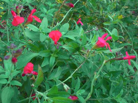 生育旺盛で、大きくなりすぎるので、適当に手でパキパキと折り取っては、調整しているチェリーセージです。もう何年も育っている赤のチェリーセージはあるのですが、友人の庭から、白に、ちょっと赤の入ったのが、株分けで我が家にきました。たしかに、来たときは、白の花が咲いていたんですよ。それなのに、今は、すっかり赤一色になってしまいました。そんなことあるんだ、と二人でびっくりしています。 これだけのスペースに、赤のチェリーセージ二本はいらないよね、と悪口言ってます。 昨日は、施設のS子さんをお訪ねしました。色んな話をしてくれます。S子さんと親しくしている入居四ヶ月の方は、車椅子。近くに住む娘さんが、土曜日には来て、外食に連れ出すそうです。S子さんも、たまにはご一緒しましょう、と娘さんが誘ってくれて、施設へ外出許可を求めたら、ダメ、と言われたそうです。特定の人同士が仲良くなると、僻む人が出て、雰囲気が気まずくなる、という理由。がっかりよ、でも、人間関係が一番だからね、といいながら、部屋を綺麗に飾り、上手に暮らしておられます。こんなものだけど、受け取ってくれる? と作ったシオリをくれました。どなたかが送ってくれたというキャラ蕗も頂いてきました。 夕方帰宅したら、近所のKさんが、太巻きを持ってきてくれました。Kさんは、Y先生に頼まれて、障子を八枚貼ってきたのですって。その間に、先生は太巻きを作ってくれて、私にもと託ってきてくれたのです。Yさんは、昔は料理の先生。だから、みんなから先生と呼ばれています。年に2回ほど、ご馳走になるのですが、具沢山の、それはおいしい太巻きです。今日の夕飯は、太巻きとキャラ蕗で、頂き物デーです。 S子さん、Y先生、 ともに90才で、頭のいいお二人。いつもこちらの方が、刺激を受けています。 ブログランキングに参加しています応援のクリックをよろしくお願いします。