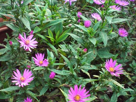 友禅菊。 宿根アスターともいいますね。花が終わると、短く刈り込みます。 また来年も、しっかりと咲いてくれますよ。 朝から、お直しのお客様がみえました。「大変な夏だった」 といいます。猛暑のことではなく、舌ガンで入院していたとか。見せてもらいましたが、舌の左4分の一ほどが、奥の方から、こそげ取られた感じ。まわりで、舌ガンの人を知らないので、とても恐ろしくて・・・。 固形のものは食べづらいけれど、何でも食べられるようになったし、言葉も明瞭になり、職場にも復帰したとか。そしたら、二、三日前に、階段から転げ落ちて、尾てい骨を打ち、歩きづらいと、足を引きずっています。悪いこと続きで、イヤになる、とも言います。 赤のレースのドレスと、黒のドレスの二枚の丈をつめ、切り取った布を半分の巾にして、二倍の長さにして、ドレスの裾にフリルを付けるのが、今日の注文です。 これくらいの巾がいいかしら、これじゃ太すぎておかしいね、とか打ち合わせ中は、とても楽しそう。体にダメージを受けた訳じゃないから、早くダンスにいかなくては、と言います。 目標があること、大好きな趣味があること、人生を負けずに生きていくコツだな、と思いました。 がんばって欲しいです。 ブログランキングに参加しています。応援のクリックをよろしくお願いします。