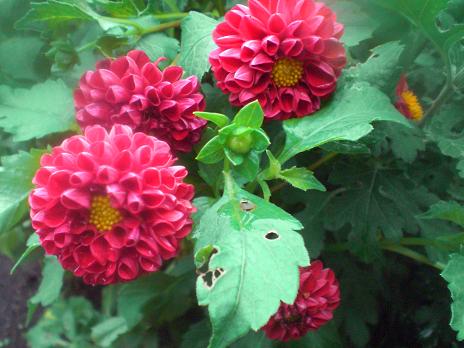 ダリア。 私の子供のころ、と言うと、大昔ですが、そのころは、どこの家にもダリアが咲いていました。あんまり好きではない花でしたが、今はじつにいろんな種類があり、可愛いのや、シックなのや、とても興味が湧いてきています。 これは小輪で、たくさんの花が咲き、銅葉なのも気にいってます。 トマト、茄子、きゅうり、とうもろこし、などの夏野菜がつぎつぎに届きます。うちの小さな畑にも、ミニトマトがいっぱい。収穫時がいっしょだから、野菜が溢れています。これって、贅沢な悩みですね。 食べ物に感謝しなきゃ。がんばって食べましょう。 私の今日の、夏野菜いっぱいのランチを見てくださいね。 ● 茄子 塩水に付けた後、一つずつラップして、レンジで二分 素材の味が逃げず、とてもおいしいです。 ● 混ぜ寿司 鮭、キュウリ、ごま、紫蘇 ● 玉子あんかけ トマトの粗切りと、トウバンジャンを炒めて、 スープでのばし、酒、砂糖、塩、コショウで味付けし、 片栗粉でとろみをつけます。 考えている以上においしいですよ。 ● トマトジュース ブログランキングに参加しています応援のクリックをよろしくお願いします。