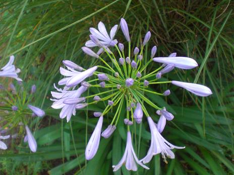 中心から放射線状に花開く、花火のようなアガパンサスです。色が涼しげで、綺麗です。 アガパンサスの葉は、下の方に見えている幅広の葉がそれです。上からかぶさっているような細い葉は、ススキです。秋にススキの穂がでると、赤い穂で、とても綺麗なのですが、こんなに増えてしまうと、これまた抜くのが大変です。 今朝の第一号のお客さまは、ジーパン裾上げを持ち込まれました。山の方の、花団地で働いている方です。「今日はお休みなんですか?」「ううん、休みを取ったの。定期的にマッサージに通っているんです」仕事に差し支えるほど、肩こりがひどくて、リンパに届かない、といわれるほど、コリコリに固いとか。 肩こりは辛いですよね~、といいながら、じつは私、ほとんど肩こりがありません。でも、皆無ではないので、辛い、というのは分かっています。それが毎日続くとなると、マッサージにも行きたくなりますよね。私は、マッサージにも行ったことがありません。お金のかからない丈夫な体に感謝です。 ブログランキングに参加しています応援のクリックをよろしくお願いします。