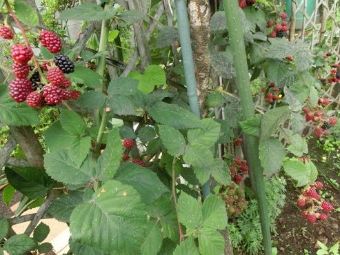 ブラックベリーが豊作です。去年作ったジャムのおいしさが忘れられず、今年はもっと収穫量を増やそうと思い、範囲を広げてみました。実が赤から黒になると、収穫するのですが、一つ一つがバラバラなので、黒くなったものから順番に収穫し、冷凍します。こんなふうに、房全体が黒く熟しているのもあります。今朝は、50ケを収穫しました。生で食べるのは、好みではないのですが、せっかくなのでヨーグルトと。味はいいけれど、種がたくさんあり、私はやっぱり、もういいわ。生は苦手でも、これがジャムにすると、それはそれは美味しいんですよ。もちろん、種は漉して取り除きます。これから毎日、収穫しては冷凍庫へ、を繰り返して、最後にジャムを作りましょう。イチゴジャム、ブルーベリージャム、いろいろ作りますが、ブラックベリージャムが一番コクがあり、とても好き。楽しみです。インゲン、オクラ、とうもろこし、なす、キュウリ、と野菜を頂きました。庭の紫蘇、冷凍庫のエビを加えて、大好きな天ぷらを揚げました。これまた大好きなそうめんと。私の一人昼ごはんです。 花ブログランキングに参加しています。 応援のクリックをよろしくお願いします。 昨日のアクセス数 1423 昨日のランキング 2 位