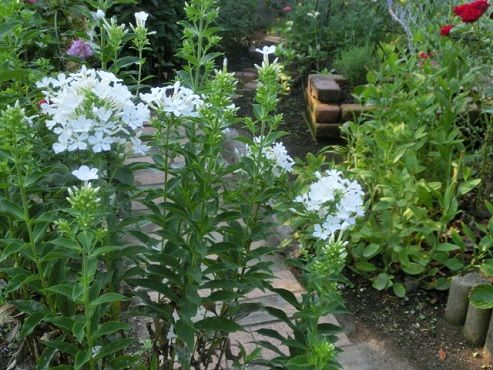 白のフロックスです。結構まっすぐに涼しそうに育っています。やっぱり白はいいですね。反対側から見ると、こんな感じです。小道を挟んで、左側のレンガで囲んだコーナーは、イチゴです。今日は、一個だけ(笑)。その場で、パクリと食べました。ピンクのフロックスは、少し前から咲き続けています。さっき来られた若いお客さんが、帰り際、「家の中でも熱中症になりますから、気をつけてくださいね」と。この暑さ、普通の挨拶なんだけれど、老人施設にお勤めの方なので、口調が優しくて、十分な老人になった気分。ホント、皆様も気をつけましょうね。水分は摂っているつもり。お昼は、牛乳に鶏ガラスープの素を入れて煮立て、肉団子、キャベツ、春雨を煮て、ポイントは、豆板醤を入れます。消化が良くて、体が熱くなり、とってもおいしくて、元気になりますよ。 花ブログランキングに参加しています。 応援のクリックをよろしくお願いします。 昨日のアクセス数 1468 昨日のランキング 2 位