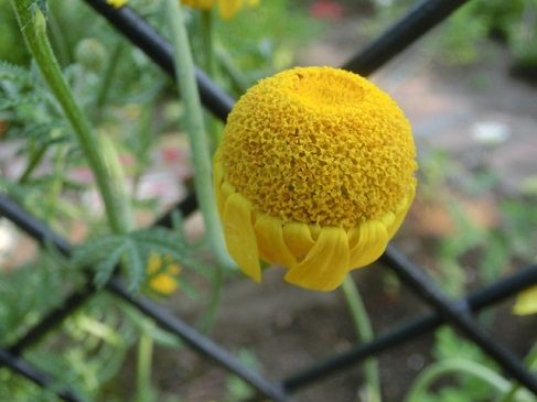 ダイヤーズカモミールです。ウフフ、花びらをぴったりと閉じていますね。これは、朝の写真です。まだ、眠っているんですよ。はい、起きました! お早う~。染毛剤のことをヘアダイといいますが、ダイヤーズカモミールの、ダイというのも、染めるという意味です。そこで、花だけを収穫して、染め物をしてみましょう。葉は、細かい切れ込みがあり、シルバーがかっていて、涼しげです。琺瑯鍋で、花をクツクツ煮出します。なんだか可愛いですね~。白い木綿のハギレを投入。クツクツと煮ます。もう黄色の液が出てきています。ナスの漬物に使った焼きミョウバンを、色止めに投入。いいなあ~、とても美しい黄色に染まりました。裏布も黄色に染めて、テーブルセンターに仕上げました。お茶は大好きなローズヒップティーです。満足~。黄色のレース糸で、小花を編み、縫い付けてみました。自分では、ダイヤーズカモミールのつもり、世界で一枚の自分用のテーブルセンター、自己満足の世界です。記録的豪雨のニュースを見るにつけ、天災の恐ろしさを感じます。のんびりブログを更新していることが、申し訳ない気持ちです。なんとか頑張って頂きたいです。ご無事をお祈りしています。 花ブログランキングに参加しています。 応援のクリックをよろしくお願いします。 昨日のアクセス数 1566 昨日のランキング 2 位