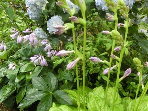 ホスタの季節です。細い葉、太い葉、斑入りの葉、明るい緑の葉、黄緑の葉、花も美しいですが、なんといっても葉に魅力があります。薄い紫の地に、濃い紫の線が入り、とてもおしゃれな感じがします。一枚目の写真のホスタを株分けしたもの。葉色が明るいですね。こちらは、まだ咲き始めですが、葉がとっても大きいです。花も大きいかな。ホスタは、ギボシという名前で、日本では昔からよく知られています。擬宝珠、とこんな漢字を書き、寺などの橋の欄干のてっぺんに付いているネギ坊主のようなものをさします。日本だけの花だと思っていたら、カナダのプリンスエドワード島に行った時、それはそれは可愛いおしゃれな家が立ち並ぶ、その玄関前の庭々には、必ずホスタが植えられていて、びっくりしたものです。日本からアメリカに伝えられ、世界に広がったそうですよ。薔薇「ラバグルート」は、遅咲きなので、いま、力いっぱい咲いています。溶岩の炎、という意味だそうで、この黒みがかった紅がなんとも好きです。午後は施設へ傾聴ボランティアに出かけます。涼しい家の中にいると、暑い外へ出るのが嫌になりますが、頑張ろう、と自分を励まします。一番親しくしている友人の入院以来、なにか心に空洞が出来ていますが、どうしてもやらなくてはならないことが次々にあることで、仕方なく動いているうちに、元気が出てきます。いま、来週のランチのお誘いのメールがありました。もちろん、行きますよ。うん、元気が出ました。 花ブログランキングに参加しています。 応援のクリックをよろしくお願いします。 昨日のアクセス数 1376 昨日のランキング 2 位