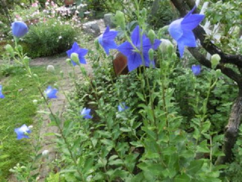 桔梗。キキョウといえば、秋の七草。私には昔から、秋に咲くイメージがありますが、でも、実際は、この暑さの中、涼し気な色で咲いています。真夏の花ですね。紙風船のような、この造形美! パン!と音がして割れるような感じ。わあ~、ぱんぱん! 割れそう、割れそう~。音はせずに、静かに開きました。折り紙でできた造花のようです。家の内外の断捨離を心がけています。使っていないものは捨てる。迷わず、パッと捨てられるほうなのですが、それでも時には迷い、捨てらずにまた仕舞うこともあります。今日は、仕事部屋に使っている部屋の戸棚を掃除しました。新聞紙にくるんだものが出てきました。新聞紙が黄色く変色しています。なんだっけ? あっ、MYGARDENのタイル!もう五年前のことですが、スペインへ行ったとき、白い街並みが美しいミハスの雑貨屋さんで買ったものです。箱に無造作に入ったアルファベットのタイルを自分で選ぶのですが、今気づきましたが、YとDとNは、色がグリーン。意図したわけではなく、たんに間違ったみたいです。久しぶりに見るわ~。せっかくですから、ちょっと飾ってみることにします。ありあわせの木片に、接着剤でがっちり貼り付けて完成。もっと早くやれよ、というところですね(笑)。針金を両端に通して、とりあえず、ブルーベリーの木に括り付けてみました。断捨離は、途中でこんな工作をしたりして、なかなか捗りません。 花ブログランキングに参加しています。 応援のクリックをよろしくお願いします。 昨日のアクセス数 1472 昨日のランキング 2 位