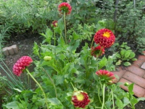 ダリアの季節です。ダリアは、花びらの形、葉の色、花の大小、と、とっても種類が多いです。うちには、珍しいものは何もなく、ただ夏の庭を彩るために咲いてくれています。ドレスの裾のフリルのような花びらの付き方が可愛いです。隣には、レモンイエローの小輪が咲いています。ダリアは、しっかりとした花びらで、花瓶に生けても長持ちするので助かります。小道を挟んだ向こう側のダリアは、葉の色が銅色ですね。これは、八重。バッタの好みらしくて、葉も花もあちこち齧られています。順番が入れ替わってしまいましたが、一昨日のランチです。以前に一度行って、とても気に入ったお店に行きました。これで1080円なんですよ。安いですね。野菜を中心に、30品目が詰められた幕ノ内膳です。コーヒーはお代わり自由。帰り道は、友人の家に寄り、冷たい甘いものが用意されていて、頂いてきました。いつもチマミさんのとこばかりだから、寄って寄って、と言ってくれました。私は一人暮らしだし、友人の家は息子さん家族といっしょなので、それは仕方ないんですよね。庭では、うちからお嫁に行った花たちも、元気に咲いていました。友人も名前が分からないそうですが、紫の小花が塊になって咲いていました。コボレタネで、四か所くらいに、芽が出て育っています。葉も花も紫陽花に似ているのですが、紫陽花は、コボレタネでは芽が出ないから、違うのかなあ。花の画像がないので、皆さんのご意見を聞けませんが、こんな植物です。さっさと抜いてビニール袋に入れてくれたものを持ち帰りました。いつも言ってますが、もう庭には花は増やさないと決めています。覚悟は固く、5月の始め以来、100円たりとも花は買ってないのですが、こんなふうに自然の流れでやってきたものは、これは花との縁なので、有難く黙って頂いてきました。私より年下の、一番親しい友人が、突如の入院以来、それまでもぼんやりと考えていた終活を、はっきりと促進させています。何が起こるか分からないな、と心の底に浸みてしまったのです。それが新しい花を買わない大きな理由です。潜在的に、いつ庭を放棄することになるかもしれない、と思っているのかな、と自分の心を分析したりしています。だからと言って、庭への情熱がなくなったわけではなく、今ある花たちだけで、どんなふうに構成できるか、と、そこに情熱を燃やしています(笑)、かな?自分の心境を書きたい、でも書くのは難しい、うまく表現できません。 花ブログランキングに参加しています。 応援のクリックをよろしくお願いします。 昨日のアクセス数 1304 昨日のランキング 2 位