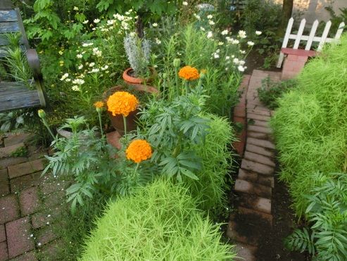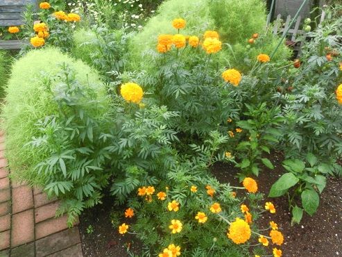 コボレタネからのマリーゴールドが咲き始めました。なぜか、うちの庭ではひとつも芽を出さず、毎年毎年、畑にいっぱい芽を出す近所の人が、今年はどう? と分けてくれていました。大体のものは、コボレタネと宿根草で成り立っている私の庭なのに、どうしてマリーゴールドはダメなのかなあ、とよく考えていました。ところが、今年は、やっと自力で芽を出してくれたんですよ。それなら、ちゃんと種を採取して、春に蒔けば確実なのに、と思われますか。ウフフ、昔から、種まきが苦手。タネを採取して、袋に入れて冬の間保管して、というその手間が苦手みたい。種まきの好きな方は、そういう手間を含めて楽しまれるのでしょうね~。マリーゴールドを見下ろす、マリーゴールドによく似た葉の植物、これはアフリカンマリーゴールドという名前です。去年、友人の庭から頂いてきて、その存在感がとっても気に入ってしまい、増えて欲しいな、と思いました。それなのに、私のしたことは、タネを採取せずに、枯れた花を茎ごと持って、空中で左右に動かし、タネを蒔き散らかし、コボレタネで発芽することを希望する、そんなやり方。どんだけ~、でしょう?こんなズボラをしたことで、困ったことが起こりました。五月ころ、マリーゴールドらしいギザギザ葉っぱの芽が出たとき、あ~嬉しいと思ったのですが、それが二つのうちのどちらかが分からないんです。オレンジと黄色があるのですが、それももちろん分かりません。若い葉は、どちらも同じように細かく小さい。と、言うわけで、抜くのが好きな私ですが、すべてを育てました。そして、やっと見分けが付くようになって、庭に来てくれる人や、近所の人に、お返しに分けています。とってもいい花よ、とすごく宣伝しながら。ちなみに、これは去年の夏の、アフリカンマリーゴールドの画像です。 花ブログランキングに参加しています。 応援のクリックをよろしくお願いします。 昨日のアクセス数 1626 昨日のランキング 2 位