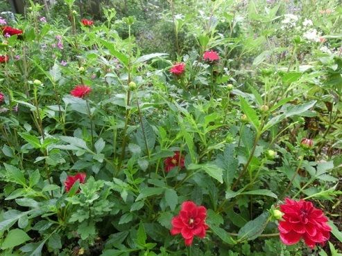 昨夜も雨が降ったらしくて、土が黒く濡れ、まるで冬の朝のような、靄が庭中に立ち込めている白い朝です。毎日、次々に開花するダリアに、すごいな~と感動しています。これで、一株というか、一つの球根から育っています。ピンクのセージも一緒に、入り乱れて咲いています。正式な名前は分かりませんが、ピンクのセージです(笑)。赤にもいろいろありまが、私は、こういう黒っぽい赤が好きなんです。ブドウを頂きました。あまり、果物はよう食べないので、どうしましょう。あした、お昼を一緒に頂く人がいるので、おすそ分けしようと思います。 花ブログランキングに参加しています。 応援のクリックをよろしくお願いします。 昨日のアクセス数 1111 昨日のランキング 1 位