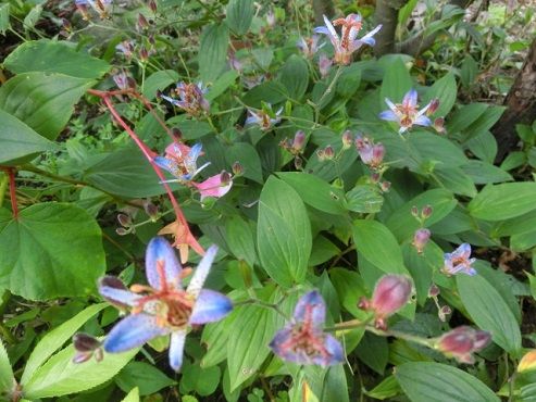 ヤブランが、美しく穂を立ち上げています。落ち着いた紫色が、近づく秋を感じさせます。これは、葉が斑入りです。こちらは、葉が緑一色です。こちらは、花も葉も、白っぽいです。三種三様で、それぞれの美しさがあります。これは、ちょっと違っている気がしますが、よく分かりません。紫蘇が繁茂していて、利用しなければ勿体ないけれど、そうは使えません。紫蘇の上は、キーウィフルーツの棚。その木陰になっているので、紫蘇にとっては良い環境なのかもしれません。話しが次々に跳びますが、キーウィフルーツ、去年は豊作だったので、今年は不作、と思っていたら、今年も鈴なりです。どうしたのでしょう。また話が飛びますが、こちらも繁茂しているゴーヤの弦が、柿の木に絡みつき、木の上の方で実っています。面白い光景です。弦を下の方から引っ張り、収穫しました。今日の収穫は、紫蘇、ゴーヤ、スティックブロッコリー。これらを使って、一人ランチです。紫蘇、鶏胸肉、ミニトマトを使った冷製パスタ。スティックブロッコリーのお浸し。ゴーヤジュース。 花ブログランキングに参加しています。 応援のクリックをよろしくお願いします。 昨日のアクセス数 1737 昨日のランキング 1 位