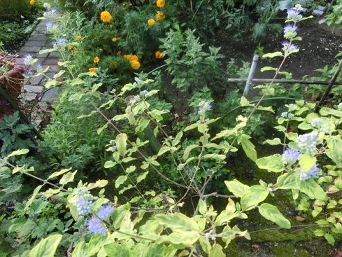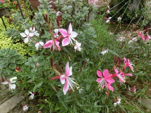 昨夜は土砂降りの雨。なので、朝になっても、雨に違いない、と勝手に決めて、外も見ないで、アラームを止めて、二度寝して気づいたら、八時でした。でも、ぐっすり眠れて、爽快な目覚めだったから、たまにはいいよね。アメジストセージが満開です。穂状に咲く紫色の先っぽから出てくる花びらは白く、その穂を触ると、ふわふわして、ビロードの感触で気持ちがいいです。あまり、する人はいないかも知れませんが、一本一本を長く切り取り、吊るしておくと、ドライフラワーになります。月日が経つと、紫色は消えてしまいますが、全体のふわふわ感は残り、それがまた私の好みで、十年くらい前のがまだ飾ってあります。もはや、景色と化しているので、今年は新しくしてみましょう。庭を見回っていたら、ピンクの千日紅が小さく咲いています。この色の千日紅がとっても好きなのですが、今年は買いませんでした。一年草だけれど、条件が良ければ多年草になるようで、去年のものがコボレタネで、今ころ、芽を出していたようです。地中を張って芽を出すベルガモットに混じっていたので、気がつきませんでした。分かりますか、濃い緑色の葉がベルガモットで、薄い緑が千日紅です。きっと小さな小さな種でしょうに、自力で種を蒔き、自力で育ち、すごく嬉しくて、すごく愛しいです。コボレタネと宿根草と多年草で成り立つ節約の庭が、根付いてきたようです。娘の家へは、娘の仕事の都合に合わせたので、平日に行きました。なので、娘と二人で、ふっかちゃんに会ったり、川岸のヒガンバナを見に行ったり、雑貨屋さんへ行ったり、そうそう、五か月ぶりに園芸店にも行きました。もう、家にも庭にも、ものを増やさないと決めていたのに、厳選したものを(笑)、少しだけ買いました。近くに、天皇陛下がいらしていたのですが、そっちへは行きませんでした。最近開店したというパンの美味しい店で、遅めのランチ。パンは大好き、どれもこれも、めちゃくちゃ美味しかったです。いつもは、そんなには食べれないのに、この量を食べてしまいました。孫からメールが来て、ばあばの塩豚冷麺が食べたい、と書いてあります。え~、娘の家に来てまで作らされるの? と毒づきながら、材料を買い物して帰り、いそいそと作りました。私は、娘の作る生春巻きが食べたいとリクエストしました。こうして、ほかにマーボー豆腐、ユーリンジーも作り、中華のメニューで、みんなで美味しく頂きました。 花ブログランキングに参加しています。 応援のクリックをよろしくお願いします。 昨日のアクセス数 1048 昨日のランキング 1 位
