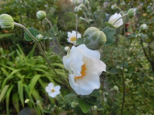 今日は「白露」。二十四気の一つで、この日から秋が深まる、とされています。シュウメイギクが咲きだしました。漢字で書けば「秋明菊」、白露という日に、とてもふさわしい花だと思います。いいですね~。綺麗!違う場所にも、咲いています。奥は、キャットミント。キャットミント。寒さに弱いので、冬は家の中へ、と書いてあるのもありますが、うちでは、この場所に植えっぱなしです。百日草の中にも咲いています。白のシュウメイギクは、まだツボミです。 花ブログランキングに参加しています。 応援のクリックをよろしくお願いします。 昨日のアクセス数 1222 昨日のランキング 1 位