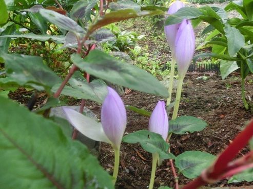 球根植物のコルチカムの花が、にゅ~と地面から出てきました。彼岸花と同じで、花が先に咲き、花後に葉が出てきます。うちのコルチカムは、樹下にあり、日陰のせいか、どこかひ弱い感じです。これは隣家のコルチカムです。陽が当たる場所に植わっていると、丈も短く、がっしりとした感じ。うちのコルチカムと比べると、違う植物のように見えます。やっぱり、こっちのほうが元気そう~。陽が当たる場所に植え替えようかな~。手前の白い花は、レッドドラゴンです。何気なく、ほかの背高植物と混じりあって咲いているのもいいかな、と思ったり。環境によって、こんなにも違うのね、と思いました。電話もしないで、突然来てごめんなさい、と友人が来訪。パン屋さんでアルバイトしている知人が、届けてくれたけれど、食べきれないので助けて、とパンをどっさり持って来てくれました。紅茶を飲みながらおしゃべり。開けてあるある窓から、そよそよと風が吹き込み、庭の緑も美しくて、気持ちの良い秋のひとときです。朝、収穫したゴーヤで、佃煮を作っていたので、半分を差し上げました。ゴーヤも、もう、これが最後の収穫かな。 花ブログランキングに参加しています。 応援のクリックをよろしくお願いします。 昨日のアクセス数 900 昨日のランキング 2 位