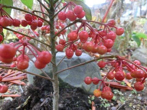 今日も日差しが燦燦。フジの枝にぶら下げたチェッカーベリーです。和名がヒメコウジというように、ヤブコウジに似ています。こちらの実の方が、少し大きいです。大好きなヤブコウジは、地植えでたくさんに広がっています。せいぜい高さは20cmほどなのに、覗き込むと、まるでヤブコウジの林の中のいるような気持になります。チェッカーベリーも、来春には地植えにして増えて欲しいと思っています。心身のバランスを崩して入院していた友人が退院できました。じつに七か月が経っています。高齢の一人暮らしのお姉さんが、しばらくは同居して見守ってくれます。帰った来れたのが嬉しいと、掃除、洗濯に精を出し、さっそく料理もして、豆を煮て、私も頂きました。お医者さんには、なんでも頑張りすぎる傾向にあるから、意識して70%の力で暮らすように、と言われているとか。70%、いいですね~。力を抜いて生きていきましょう。傾聴ボランティアに伺っている施設から電話があり、感染症の流行にともない、三月まで外部の人の訪問をお断りしたい、と。そういえば、去年もそうでした。私は、ホッとしていますが、傾聴のお相手のOさんの顔を思い浮かべて、三か月も寂しいだろうな、と想像します。Oさんによろしくお伝えください、と電話を切りました。 花ブログランキングに参加しています。 応援のクリックをよろしくお願いします。 昨日のアクセス数 1558 昨日のランキング 3 位