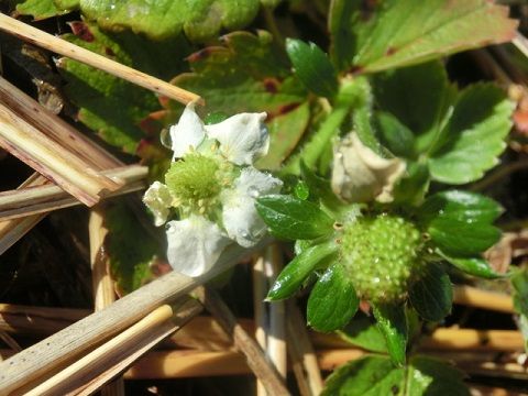 イチゴの花が咲いています。時々、不定期に咲きますが、どうせ実のなる時期ではないので、花は摘み取ったほうが、株のためにはいいようですね。レンガで囲ったイチゴ畑。もう十年以上も、この場所に、植えっぱなしです。ランナーが出ると、それを横に埋めて育てる、という更新の仕方です。春でも大した収穫はなく、一日5,6個採れるという、お遊びの世界ですが。ススキ。この茎を刈り取って、10cmくらいに切り、藁の代用として、イチゴの保温に使っています。なるべく、あるものを利用します。果物が苦手。リンゴなど頂いても、飾ったままシワシワにしてしまうことが多いです。この黄色のリンゴ、昨日頂きました。ぐんま名月という、あまり流通していないので、原産地へ行かないと買えない希少リンゴなんですって。苦手、といっても、食べれないわけではないので、よし、今日は食べるぞ、と剥きました(笑)。大袈裟ですね~。蜜が入って、さっぱり味、とても美味しくいただきました。午後は、個人のお宅の傾聴ボランティアに伺います。 花ブログランキングに参加しています。 応援のクリックをよろしくお願いします。 昨日のアクセス数 1809 昨日のランキング 2 位