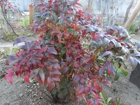 オタフクナンテン。去年、お隣さんから頂きましたが、しっかりと根付き、一回り大きくなり、とても美しく紅葉しています。南天と違って、実をつけません。常緑樹なのに、霜が降りると、こんなに真っ赤に紅葉するんですよ。大木にならないので、庭に一本あってもいい植物です。昨日、正月食品の買い出しに行ったとき、駐車場で名前を呼ばれて振り向くと、〇〇さんでした。お元気そうで良かった、とお互いに挨拶しながらも、名前が出てきません。庭にある大きなヤマザクラが咲くころには、それを鑑賞するために、お茶に呼んでくれる親しい人です。半年ほど前、外食をご一緒した以降、会っていないので、ご無沙汰といえばそうなのですが、それにしても、そんな親しい人の名前が出てこないなんて、本当にショック。おしゃべりしながら、必死に思い出しました。いまは、辛うじて笑い話で済みますが、認知症の人の不安な気持ちがちょっと分かった瞬間でした今日の午前中、お直しを引き取りにみえたお客さん。もう何年も、利用して下っていて、引っ越し先からも来てくれています。いろんな役を引き受けて、活動的な方ですが、来年の三月で、すべての役を降りようと思う、とのこと。ご主人が、物忘れが多いので、脳のMRI検査を受けたら、一部の脳が委縮していたそうです。今なら薬の服用で、進行を止められるかも、と服用を始めたので、自分も家にいる時間を増やして、ご主人のそばについていようと思う、とおっしゃいます。脳が委縮していく・・・、昨日の自分を思い出して、コワイ、どうしよう、と思いました。 花ブログランキングに参加しています。 応援のクリックをよろしくお願いします。 昨日のアクセス数 1708 昨日のランキング 2 位